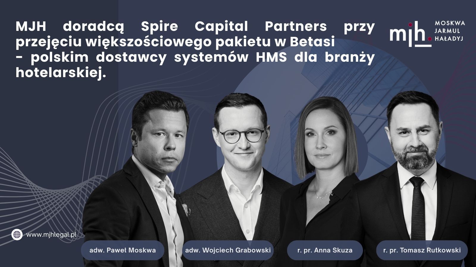 Kancelaria MJH Moskwa, Jarmul, Haładyj i Partnerzy – Adwokaci i Radcowie Prawni sp.p. doradzała funduszowi Spire Capital Partners przy nabyciu większościowego pakietu udziałów w spółce Betasi, polskim dostawcy zaawansowanych systemów HMS (Hotel Management Systems) dla branży hotelarskiej.